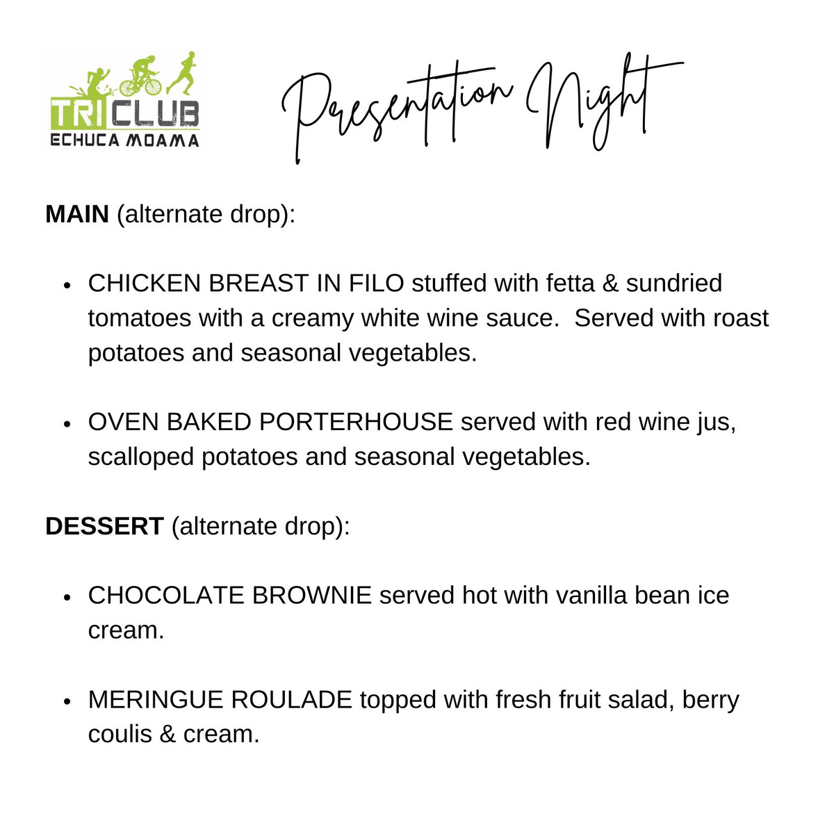 Alternate Drop Main & Dessert.
